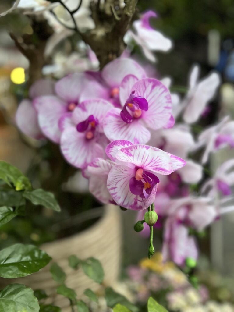The entrance gate to Ba Nanh Pagoda (also known as Tien Phuc tu) in Hanoi was full of pink and white orchides when we went.