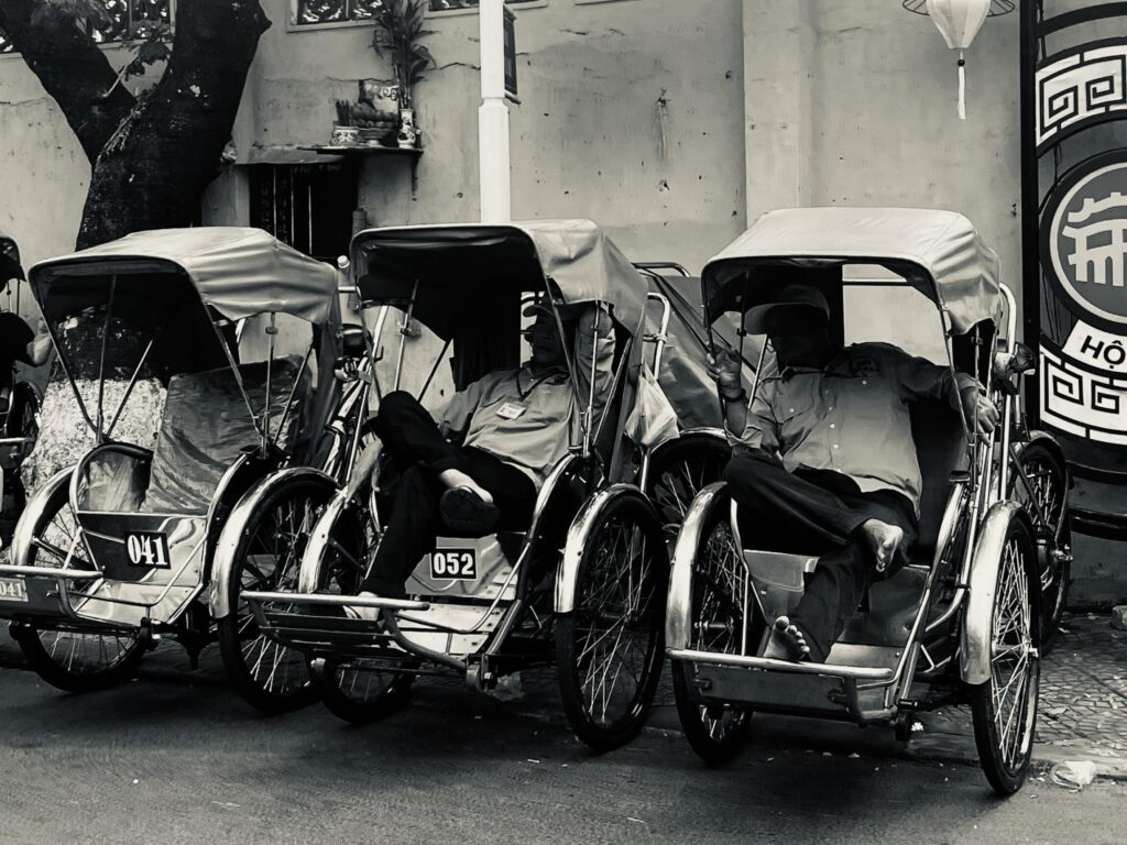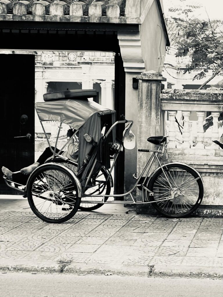 In Vietnam they are called Cyclos and they’re one of the most iconic street scenes you’ll notice. Here the passenger sits in front of the driver.