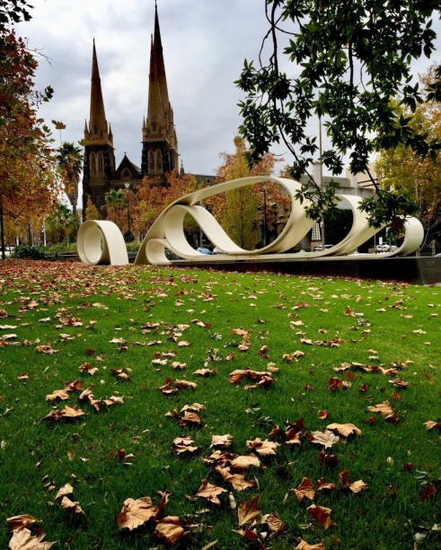 The Big Petition sculpture is a 20-metre-long scroll which goes on the ground and seems to reappear on the next pathway. It was unveiled on 3 December 2008 to commemorate the centenary of women’s suffrage in Victoria.