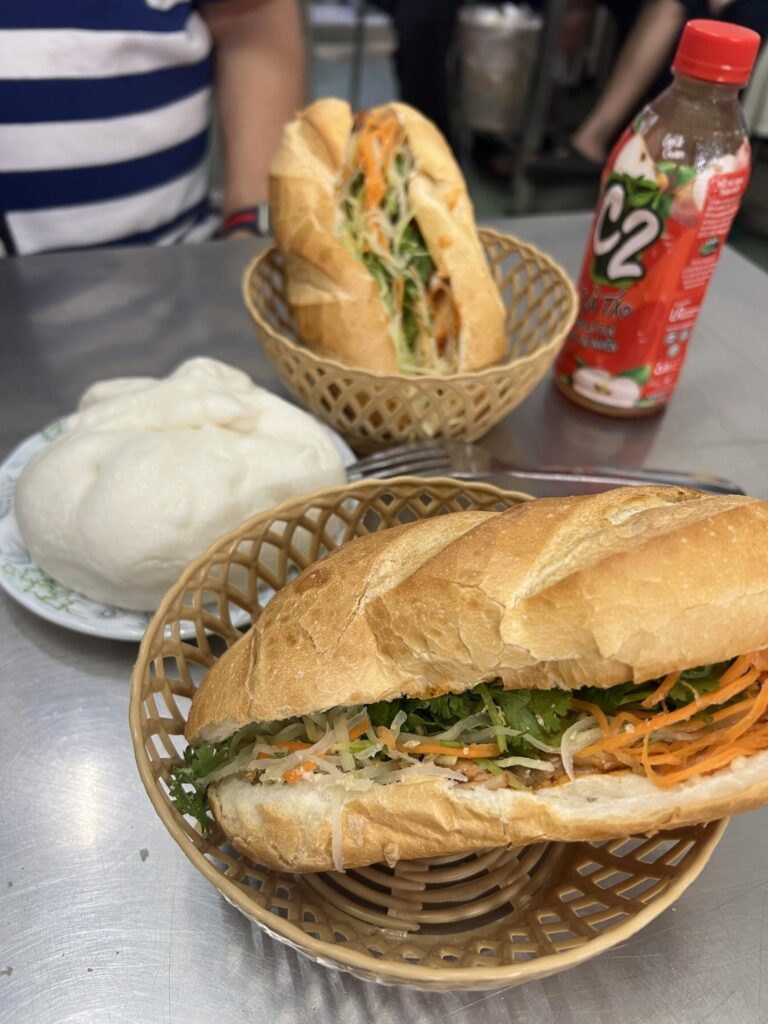 But first … lunch of course. We had authentic Bánh Mì from a small spot right in front of our hotel. There was a bit of a queue, so we figured it had to be good. The meat was alright but the French Bread was extraordinarily yum.