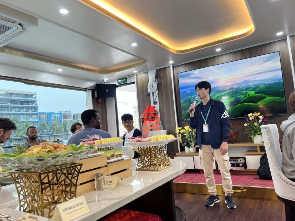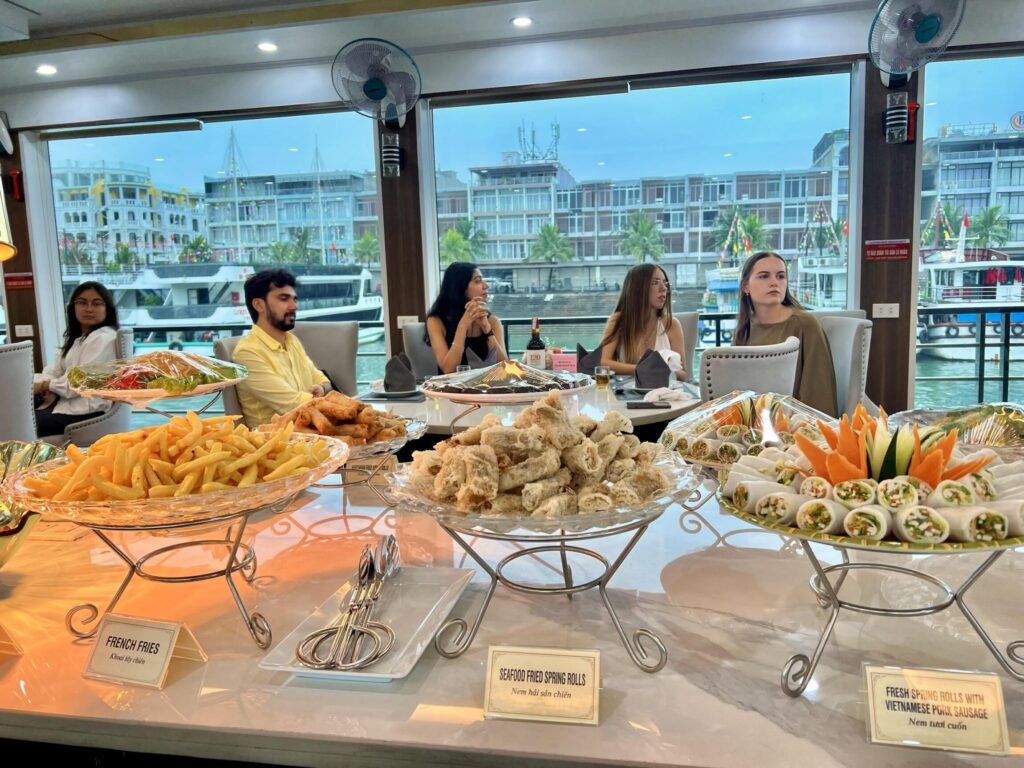 It was fast, bumpy, and so much fun. The driver really went all out and we couldn’t stop laughing. After the thrilling ride, we stopped at a peaceful pearl farm in Ha Long Bay, surrounded by calm green waters and limestone cliffs. Learning how pearls are formed made it even more interesting*.