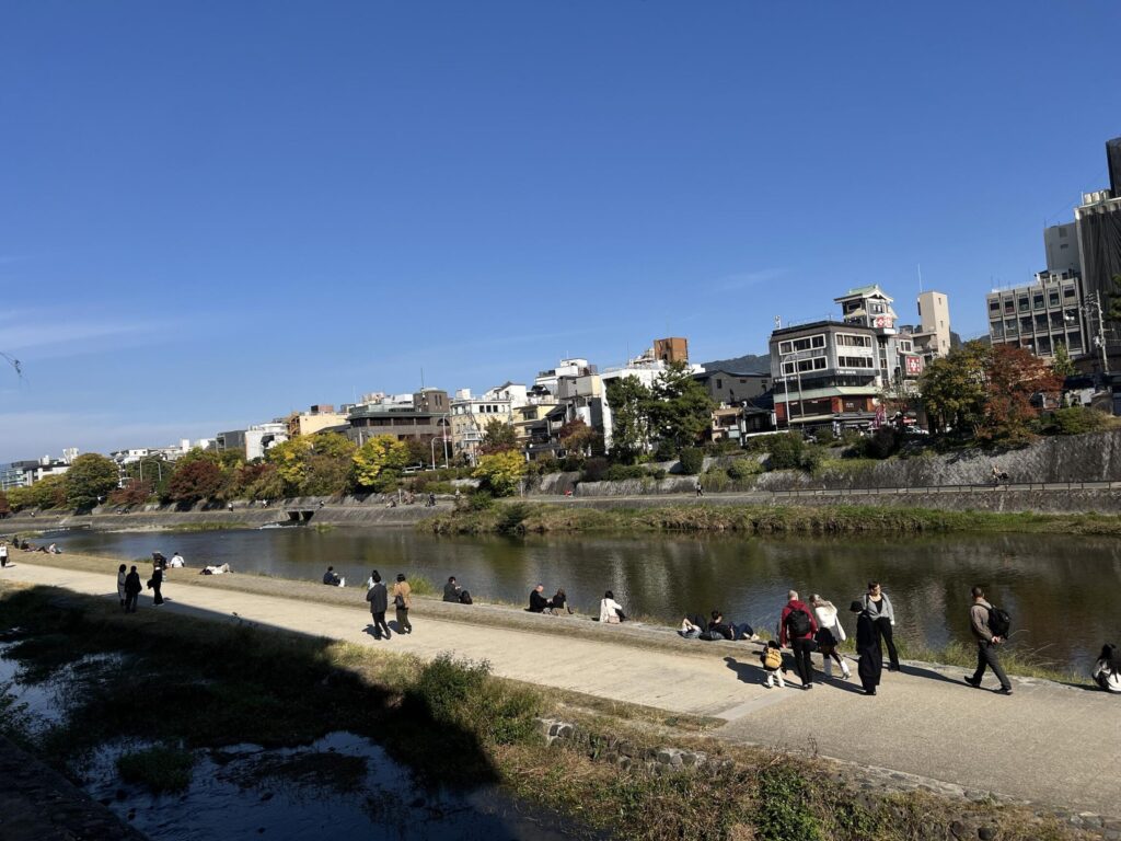 Jack and I continued our walk and reached the Kamo River. The Kamo River (鴨川, Kamo-gawa), runs through Kyoto and is a popular place for locals and visitors to wander, sit by the water, and enjoy a slower pace of the city.