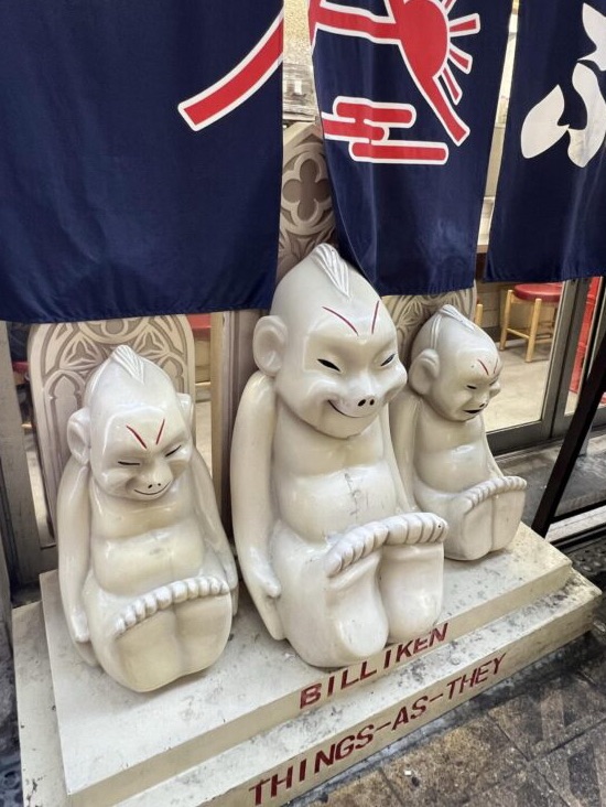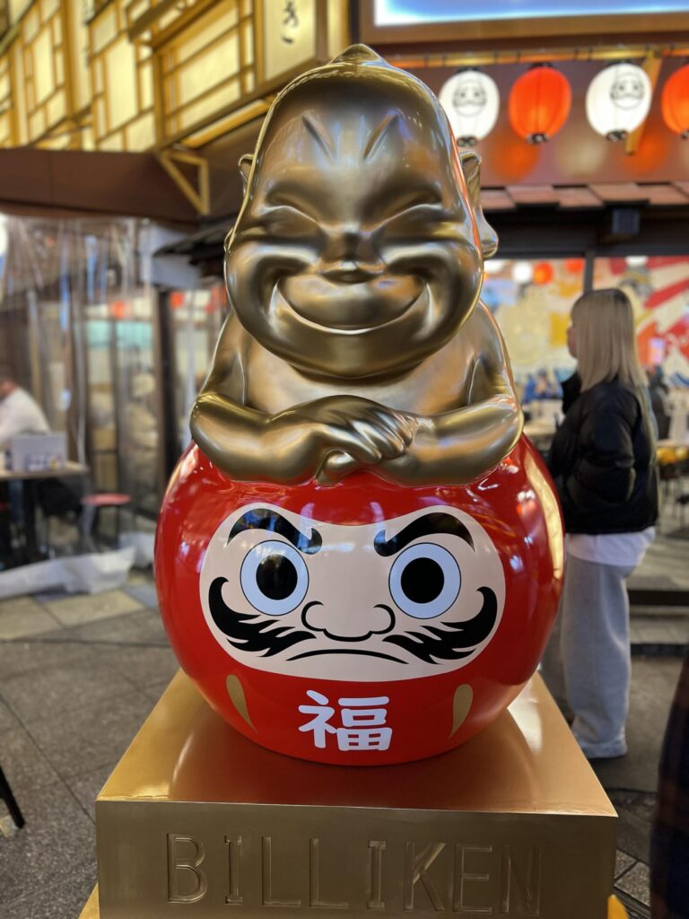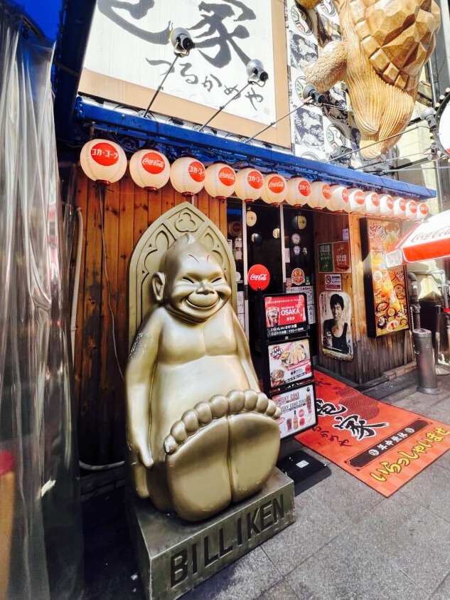 In Osaka, I spotted several smiling golden figures sitting proudly in Japanese restaurants and shopfronts. This is Billiken, a beloved good-luck character. Originally inspired by a Western statue and introduced to Japan in the early 1900s, Billiken has become a symbol of happiness, prosperity, and good fortune.